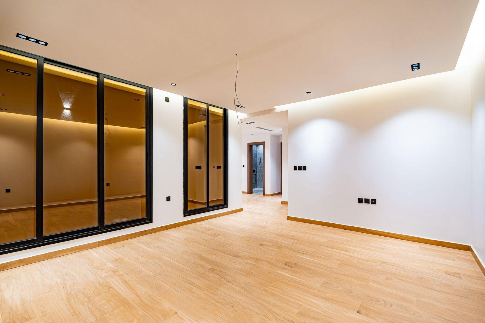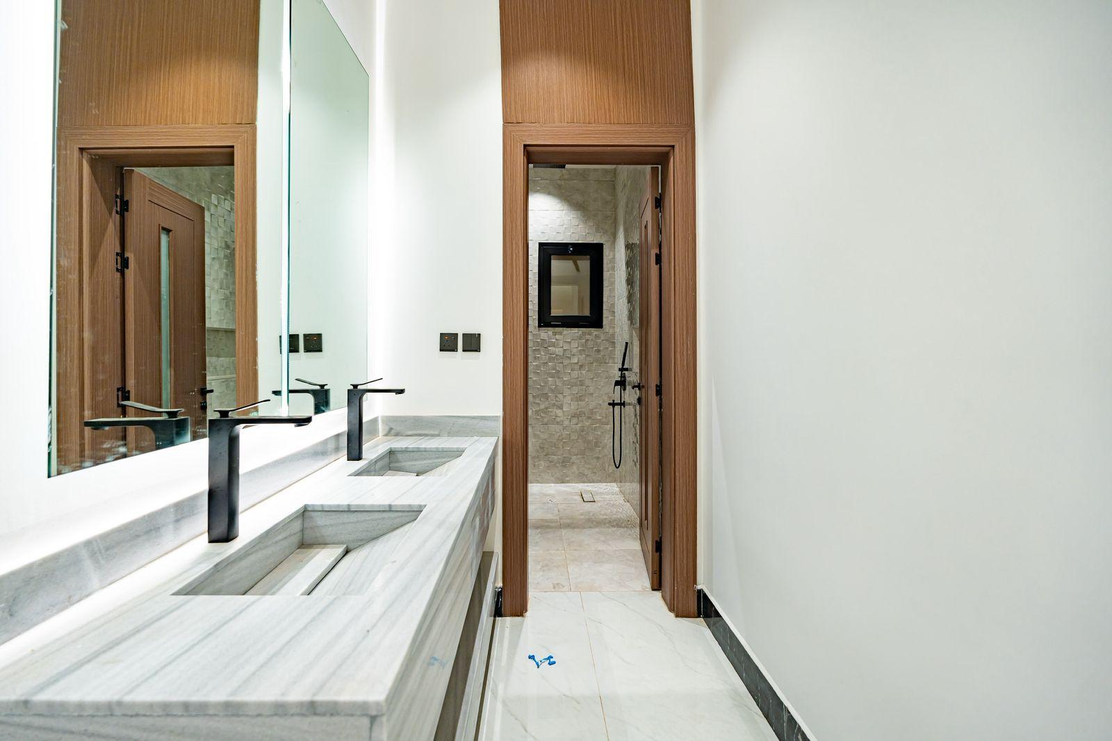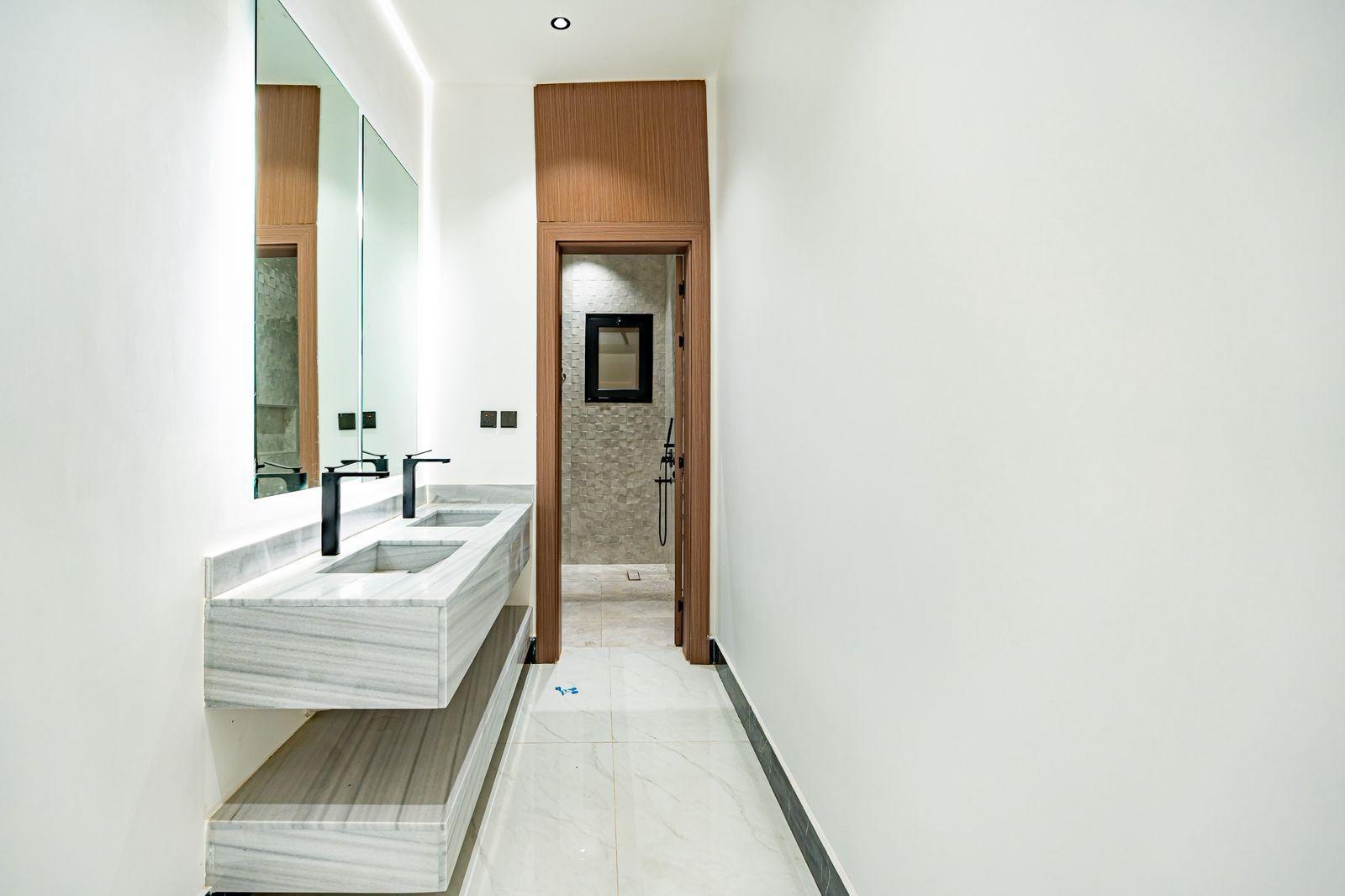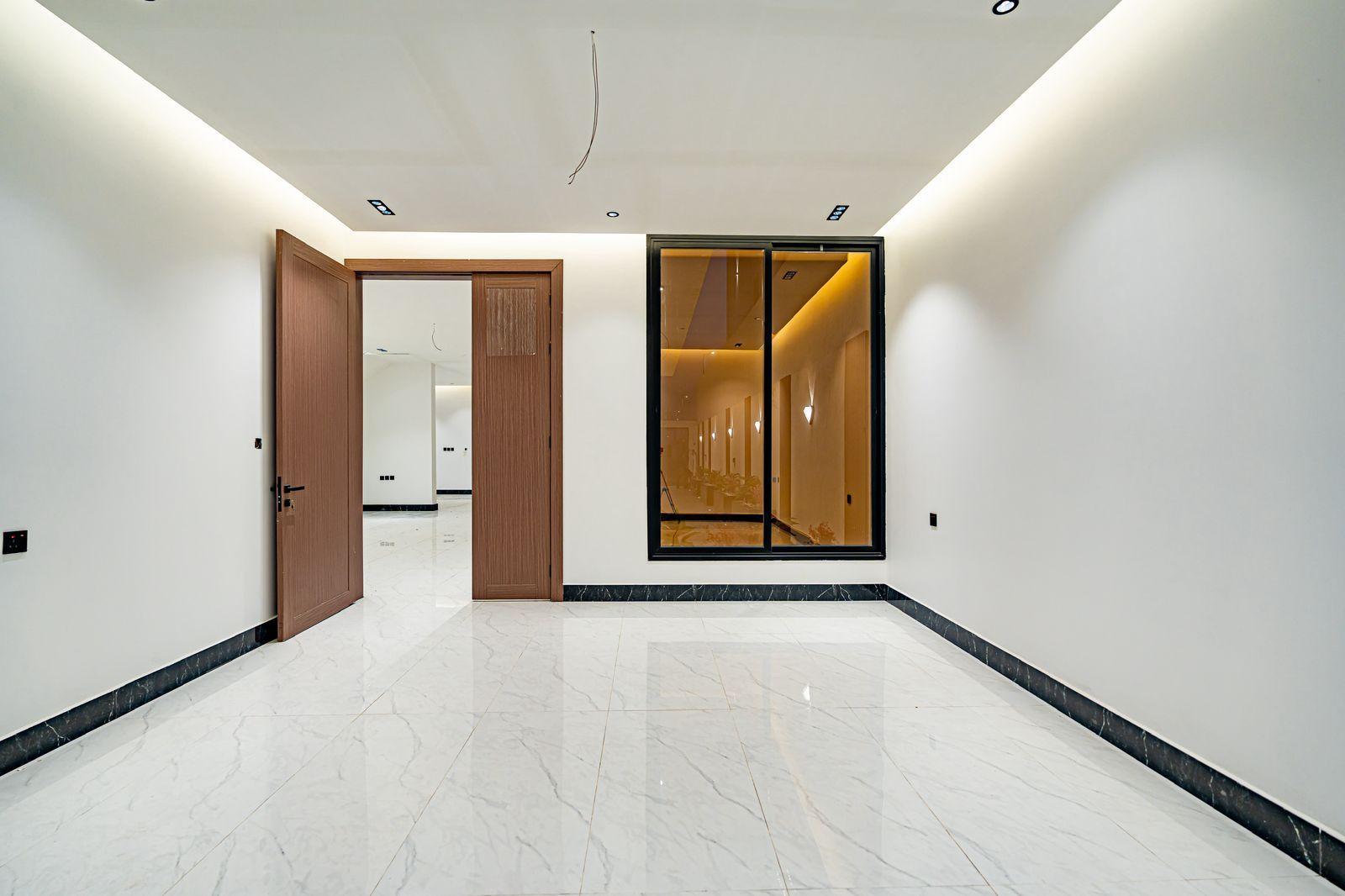 مصعد مؤسس، تكييف مركزي للدور الأرضي وغرفة النوم الرئيسية، سخان مركزي، رخام وحجر طبيعي، جبس بورد مقاوم، دهانات جوتن، سباكة تحويل + GM، خلاطات Grohe، كيابل الرياض، عوازل حرارية ومائية متكاملة (فوم 10 سم + طابوق أبيض).