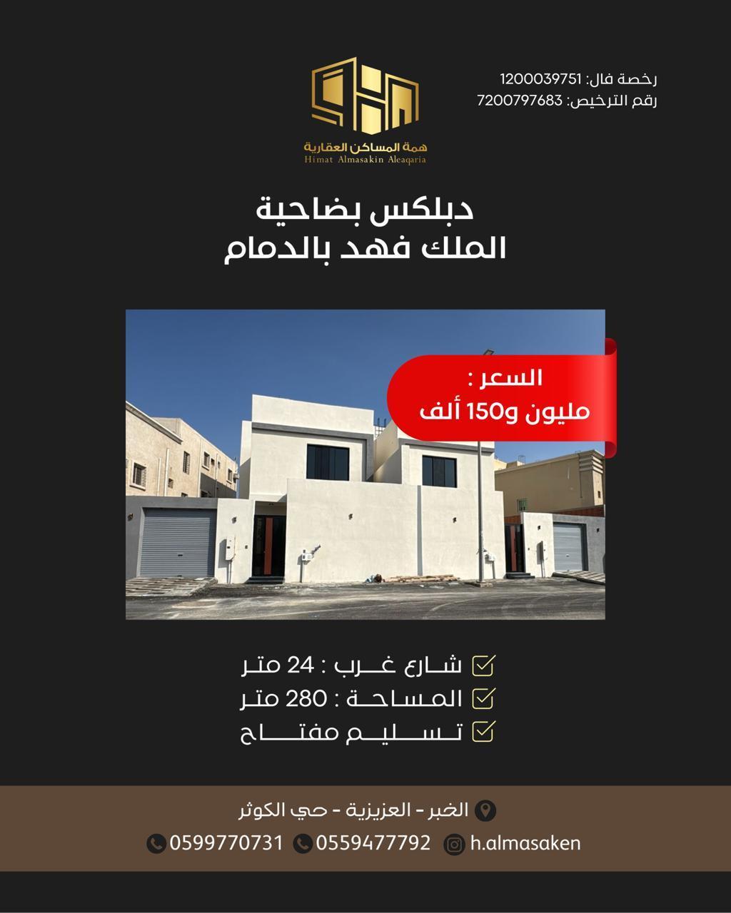 للبيع دبلكس بضاحيه الملك فهد بالدمام