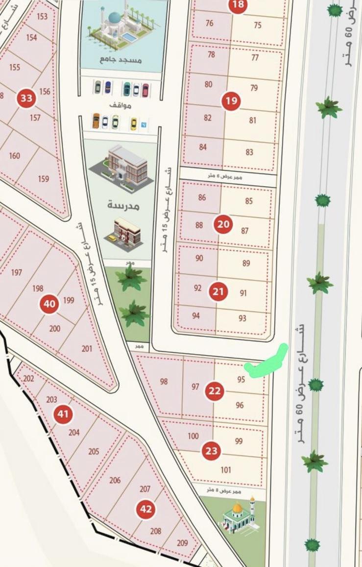 على شارع عرض 60 م وشارع 15 م