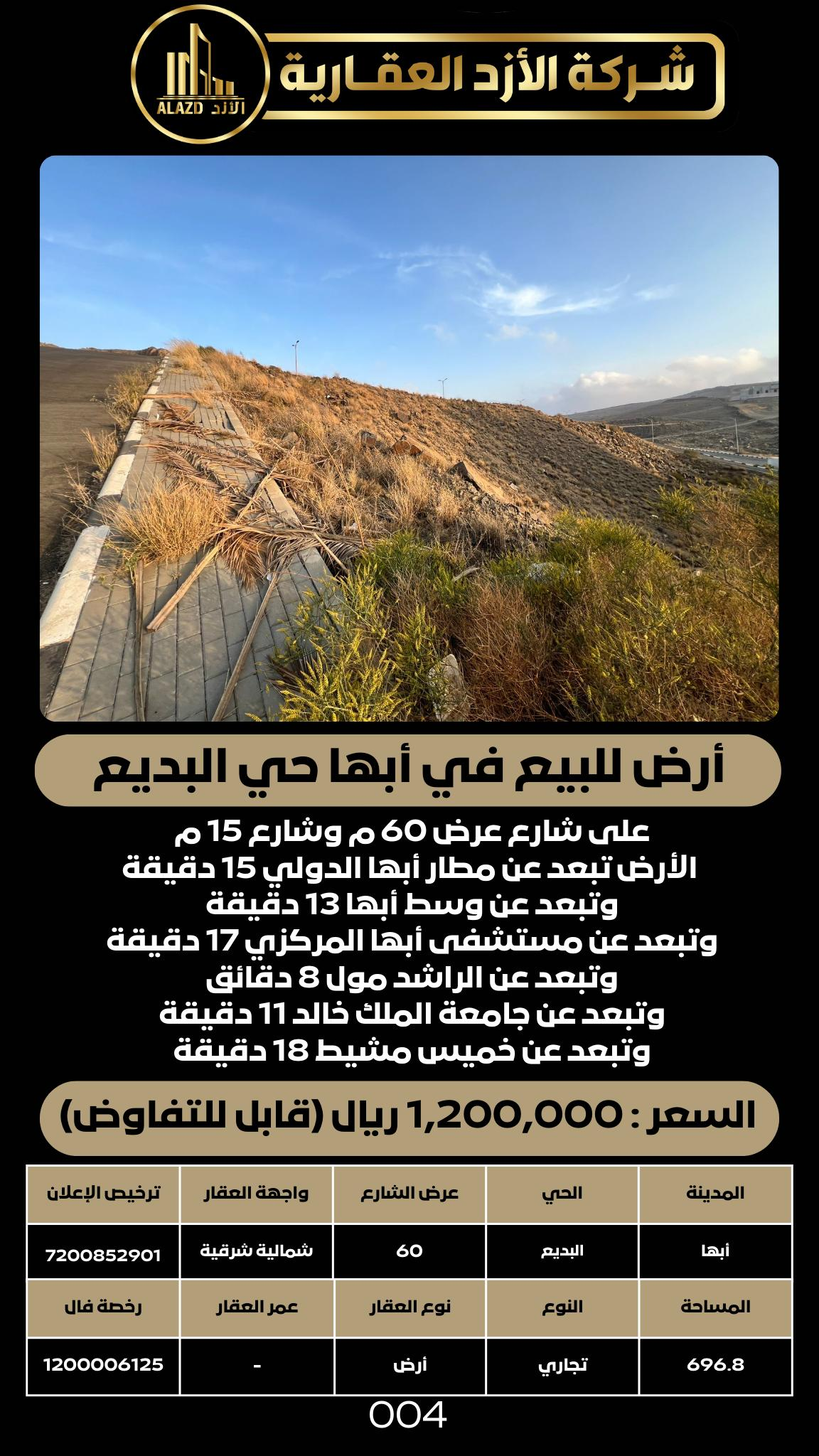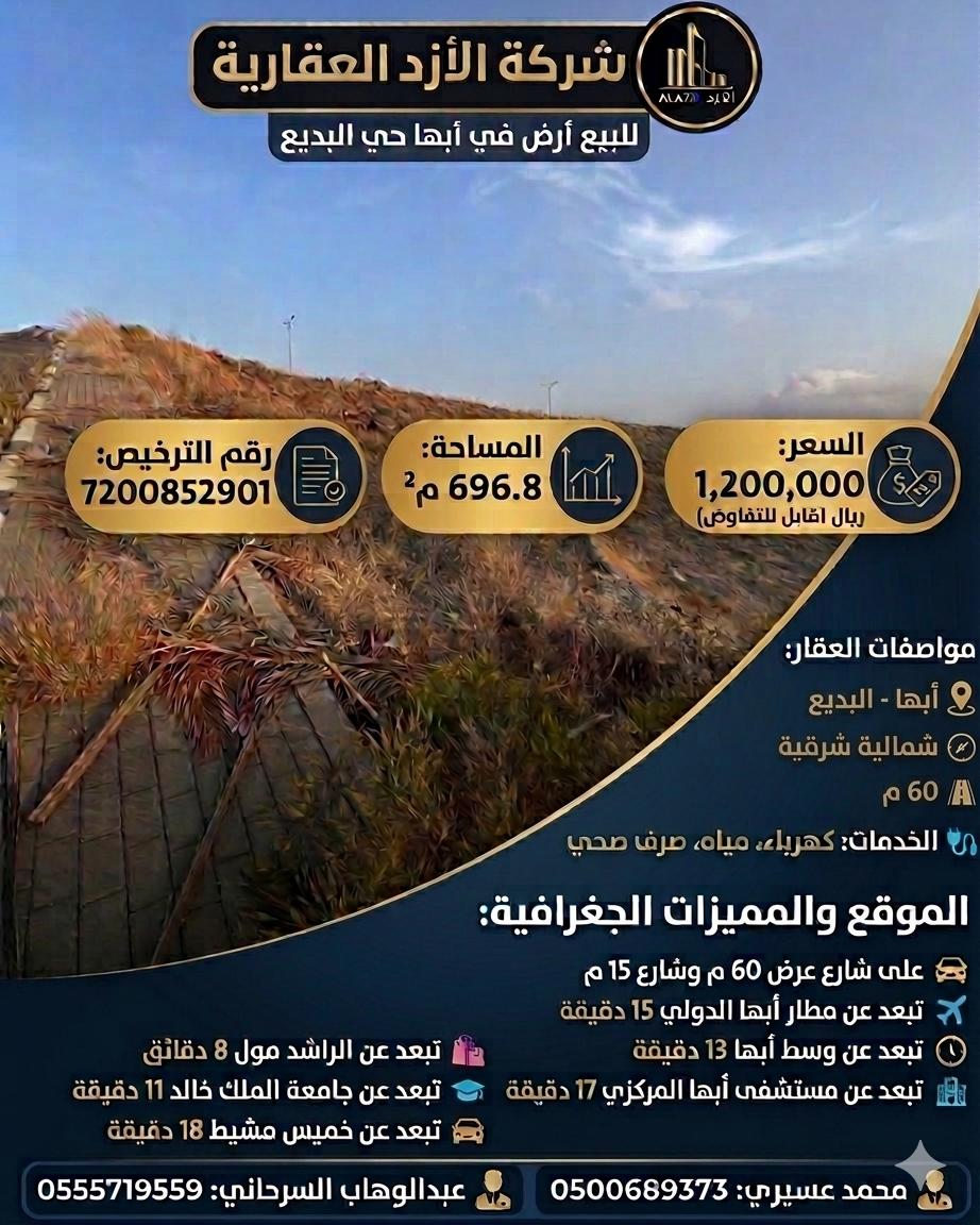 أرض للبيع في أبها حي البديع