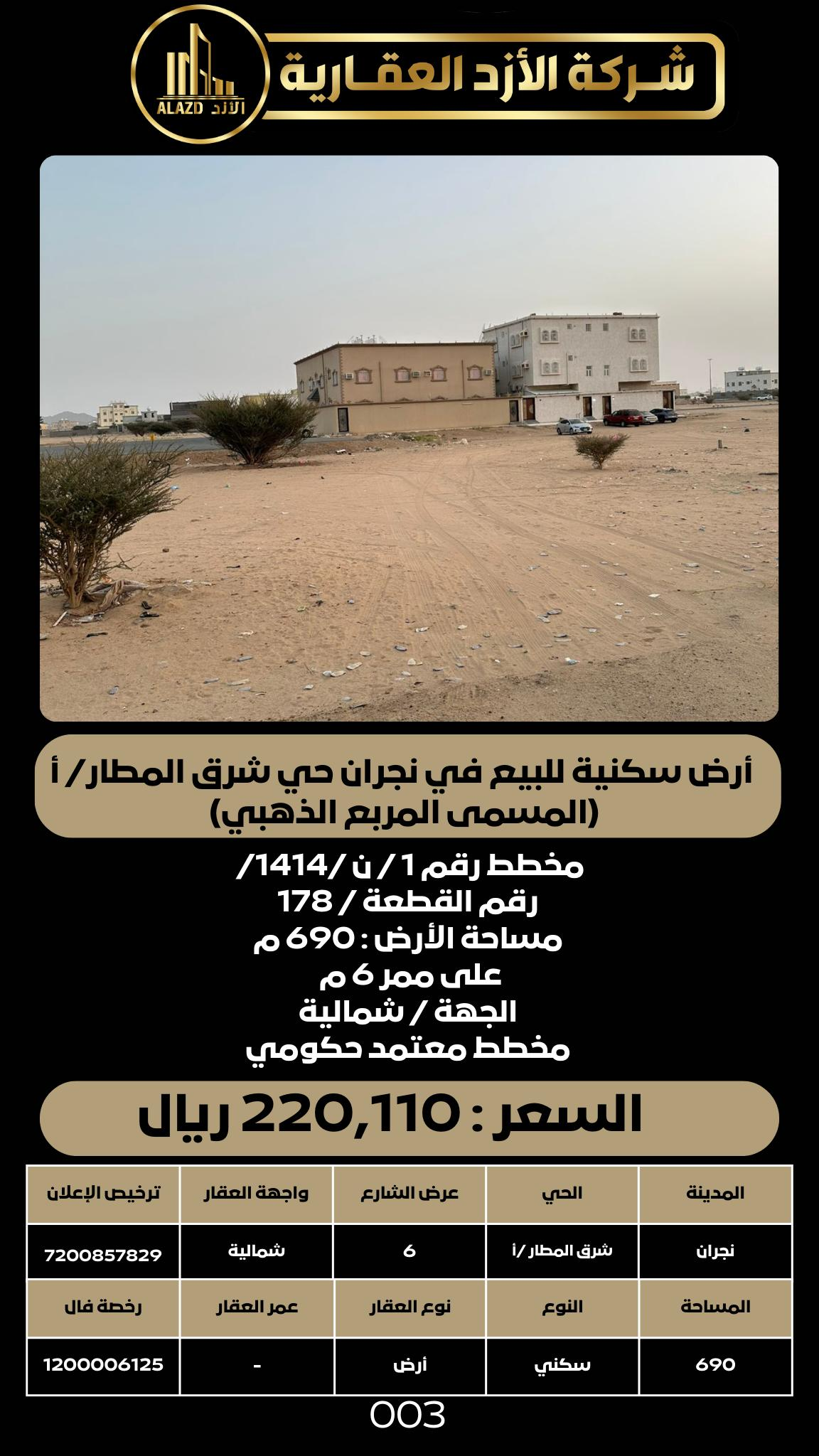 أرض سكنية للبيع في نجران حي شرق المطار/ أ (المسمى المربع الذهبي)