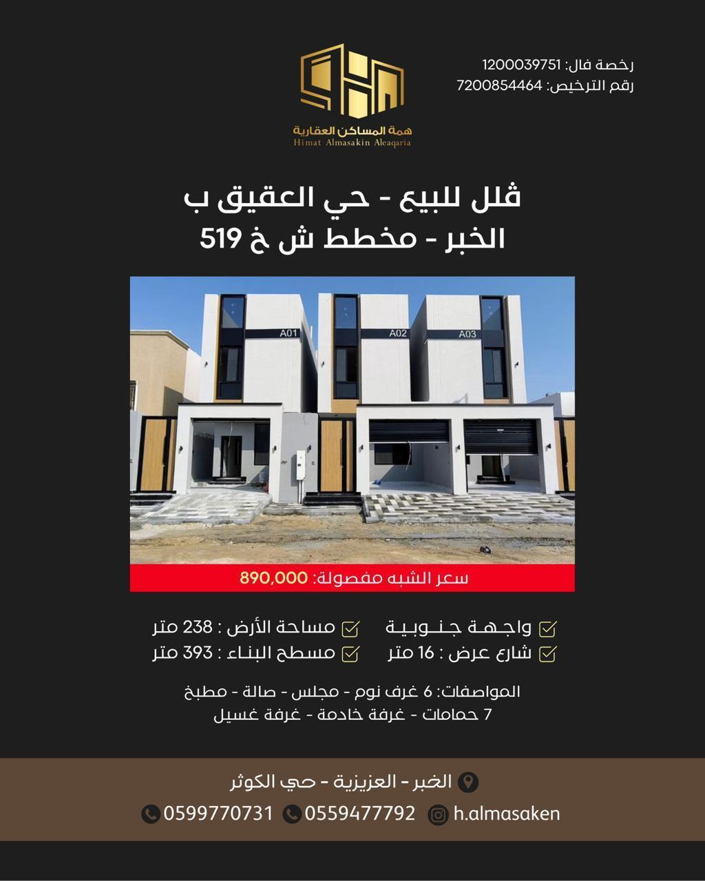 للبيع دبلكس شبه منفصل بالخبر بمخطط العقيق