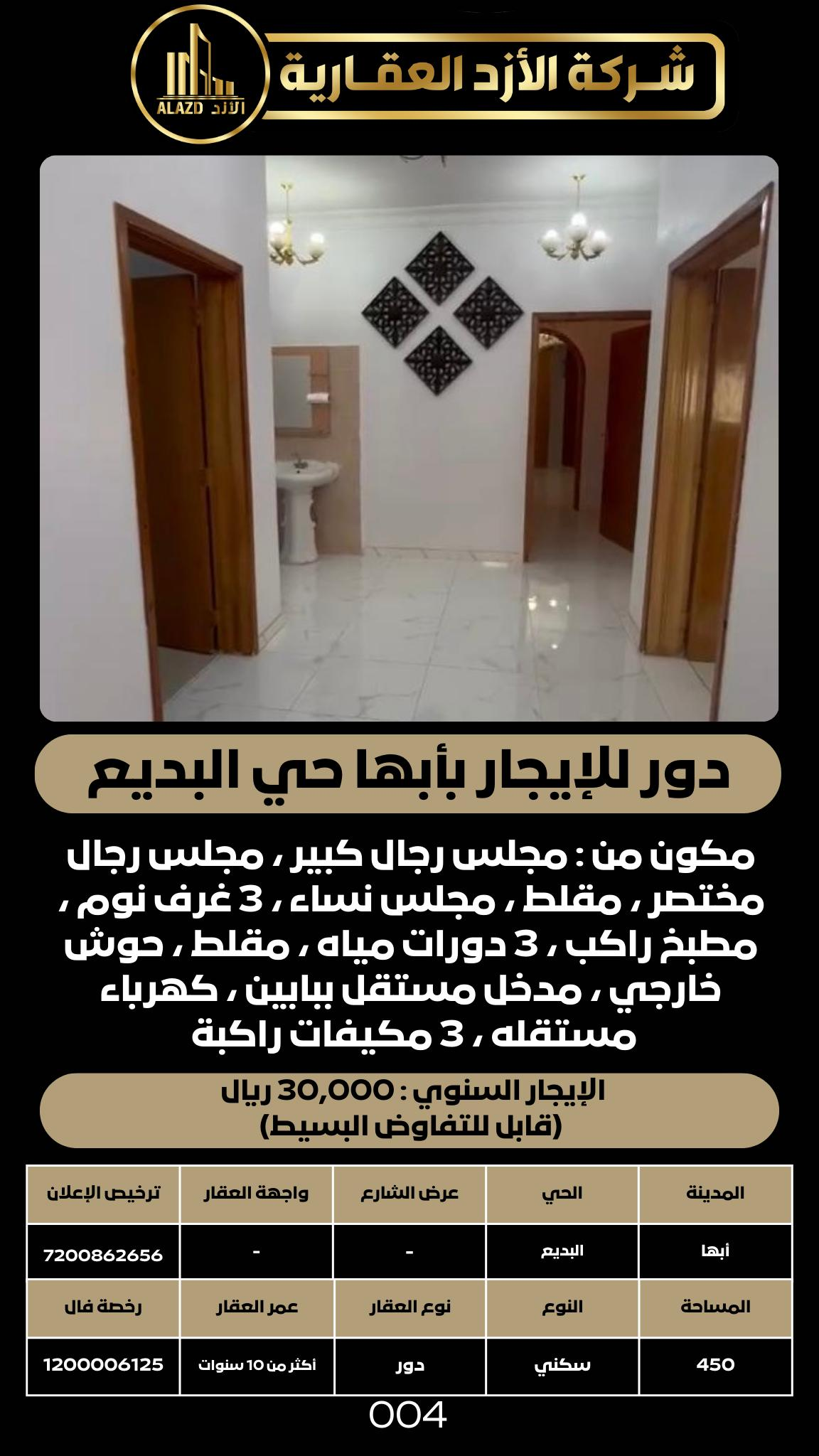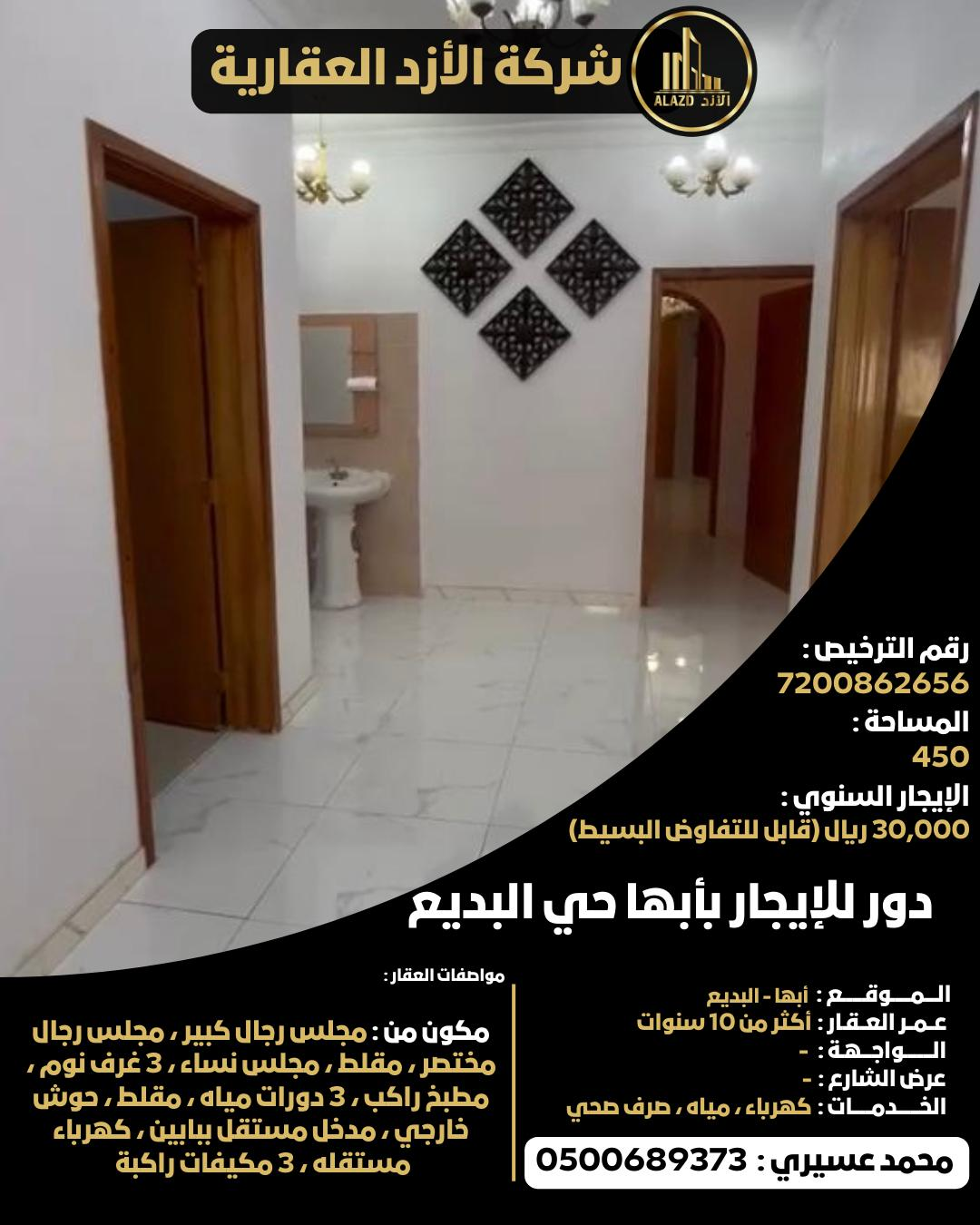 دور للإيجار بأبها حي البديع