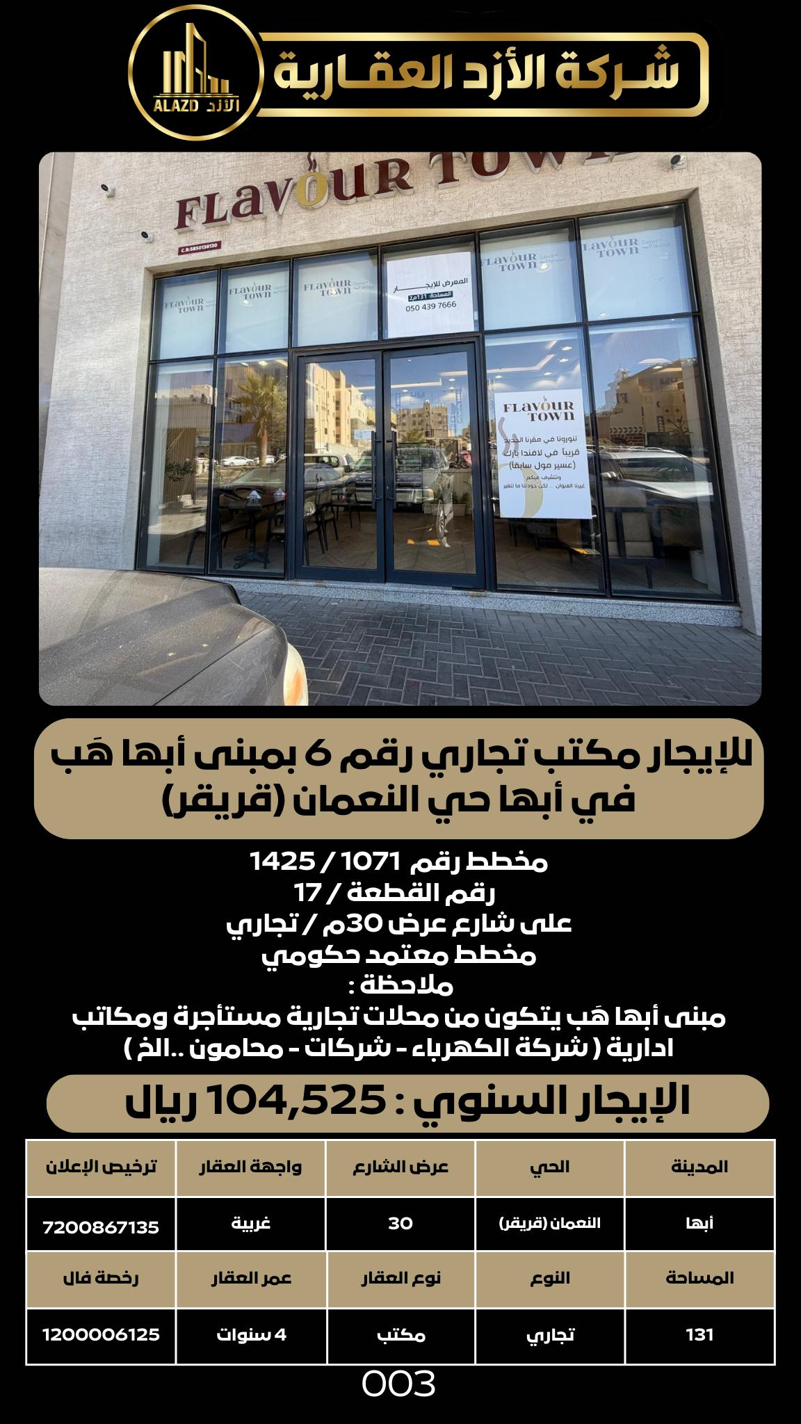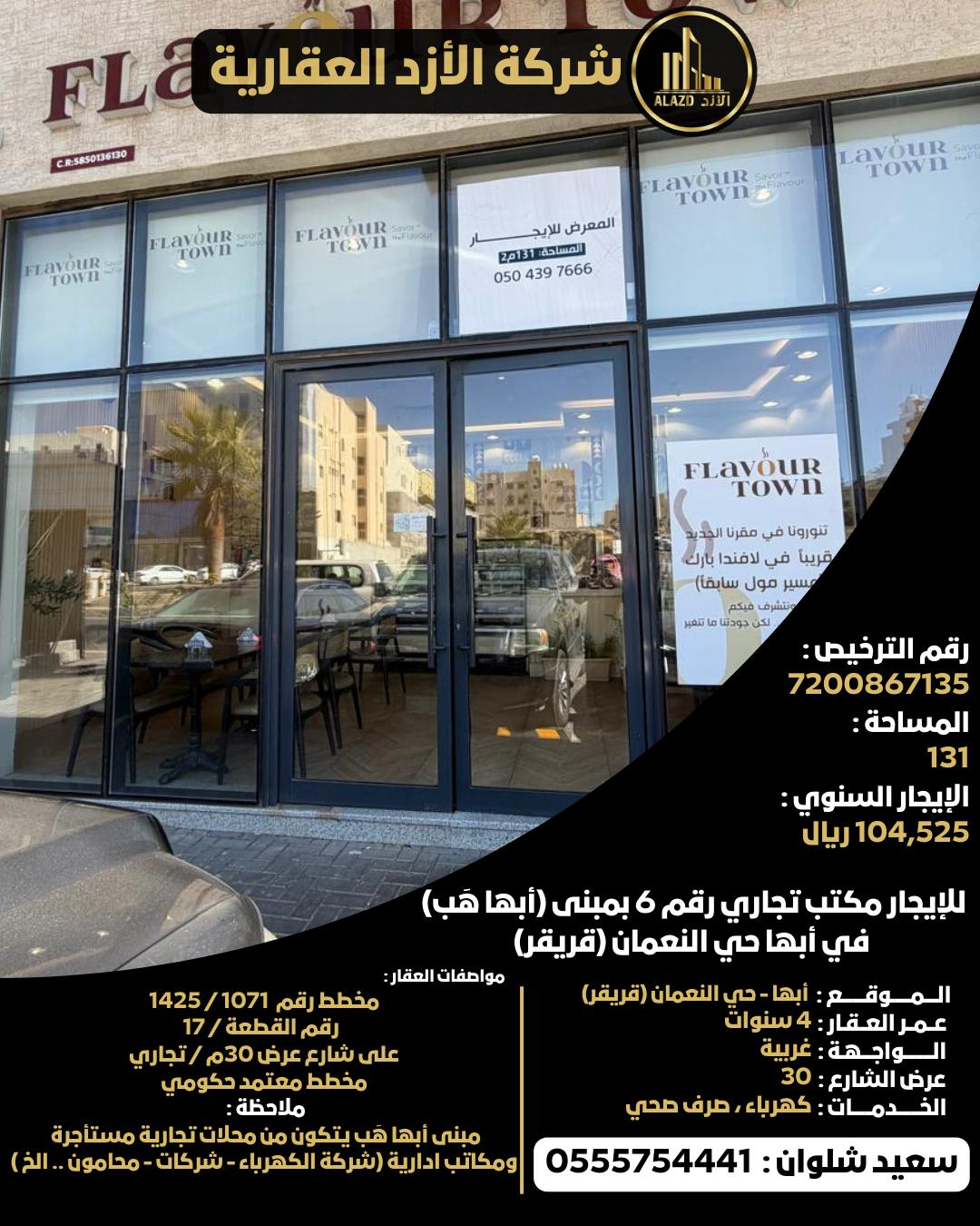 للإيجار مكتب تجاري رقم 6 بمبنى أبها هب في أبها حي النعمان (قريقر)