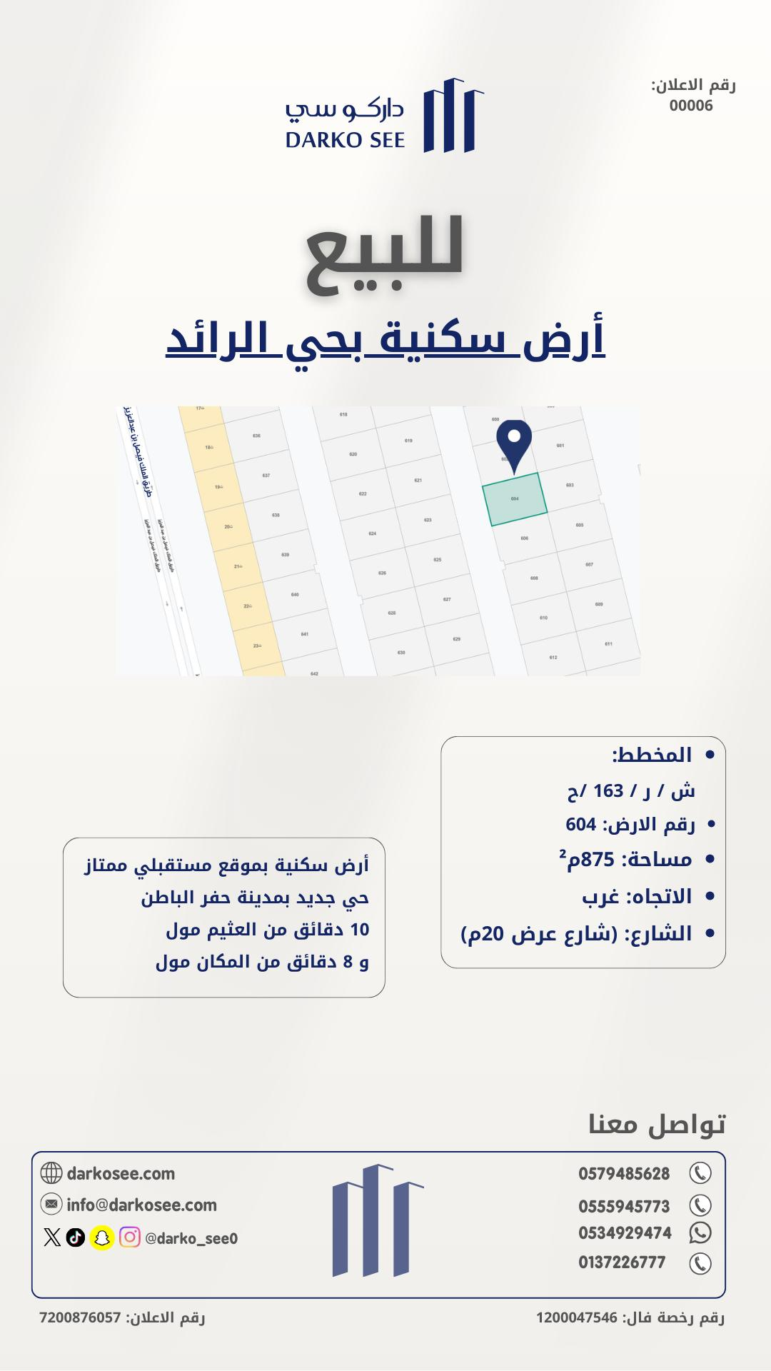 أرض سكنية بموقع مستقبلي ممتازحي جديد بمدينة حفر الباطن10 دقائق من العثيم مول و 8 دقائق من المكان مول