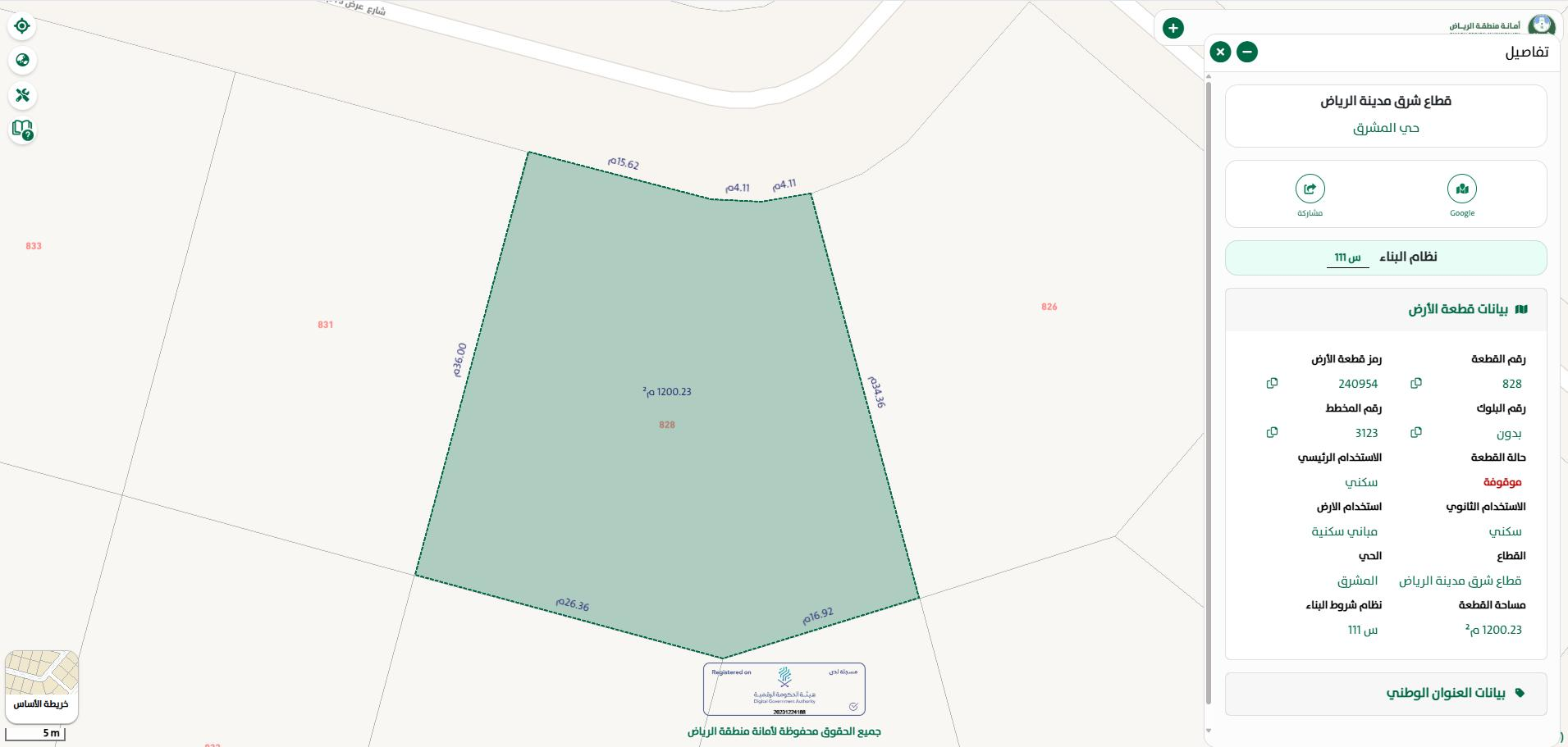 📍 مخطط 3123 – قطعة 828