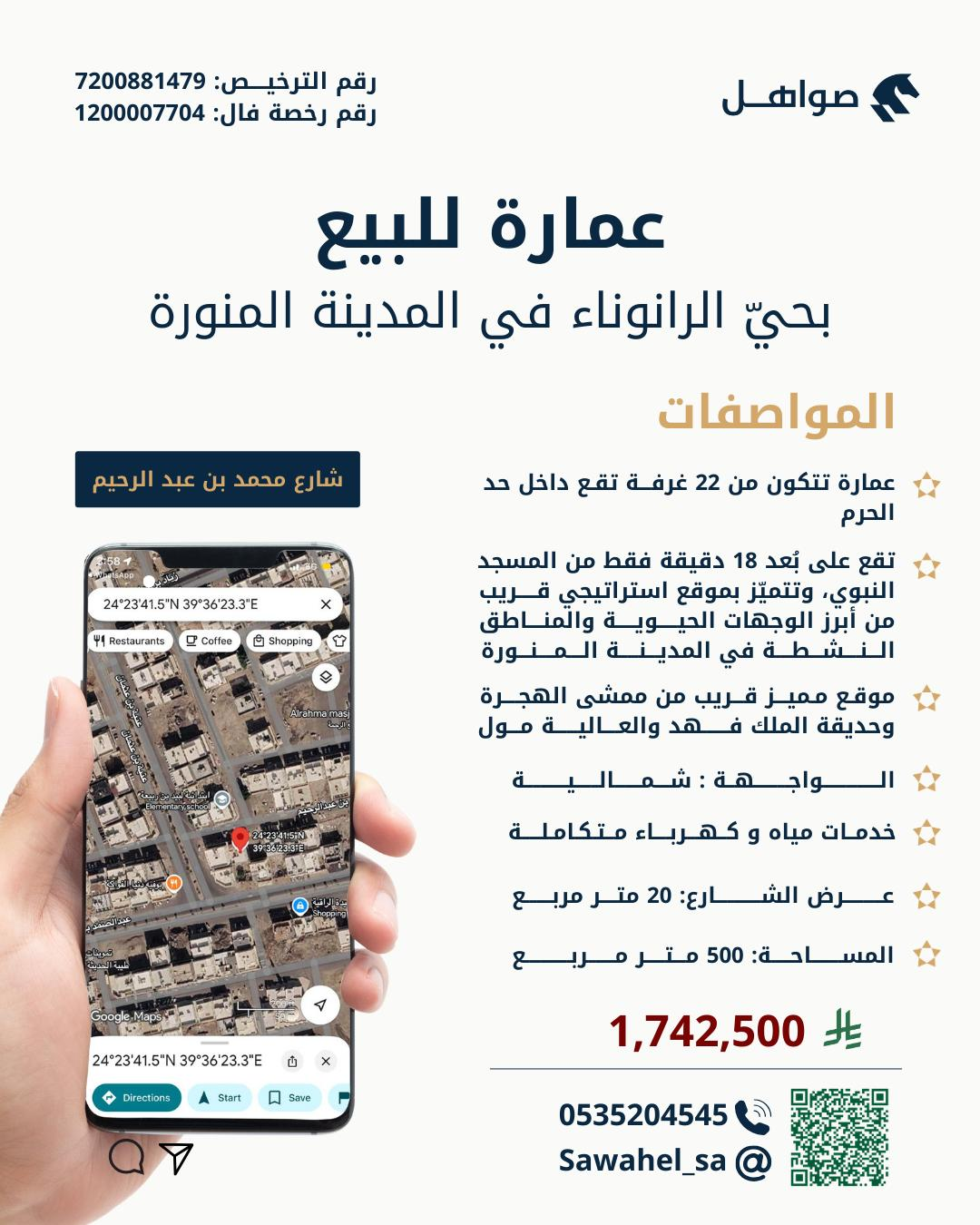 عمارة للبيع بحي الرانوناء في المدينة المنورة