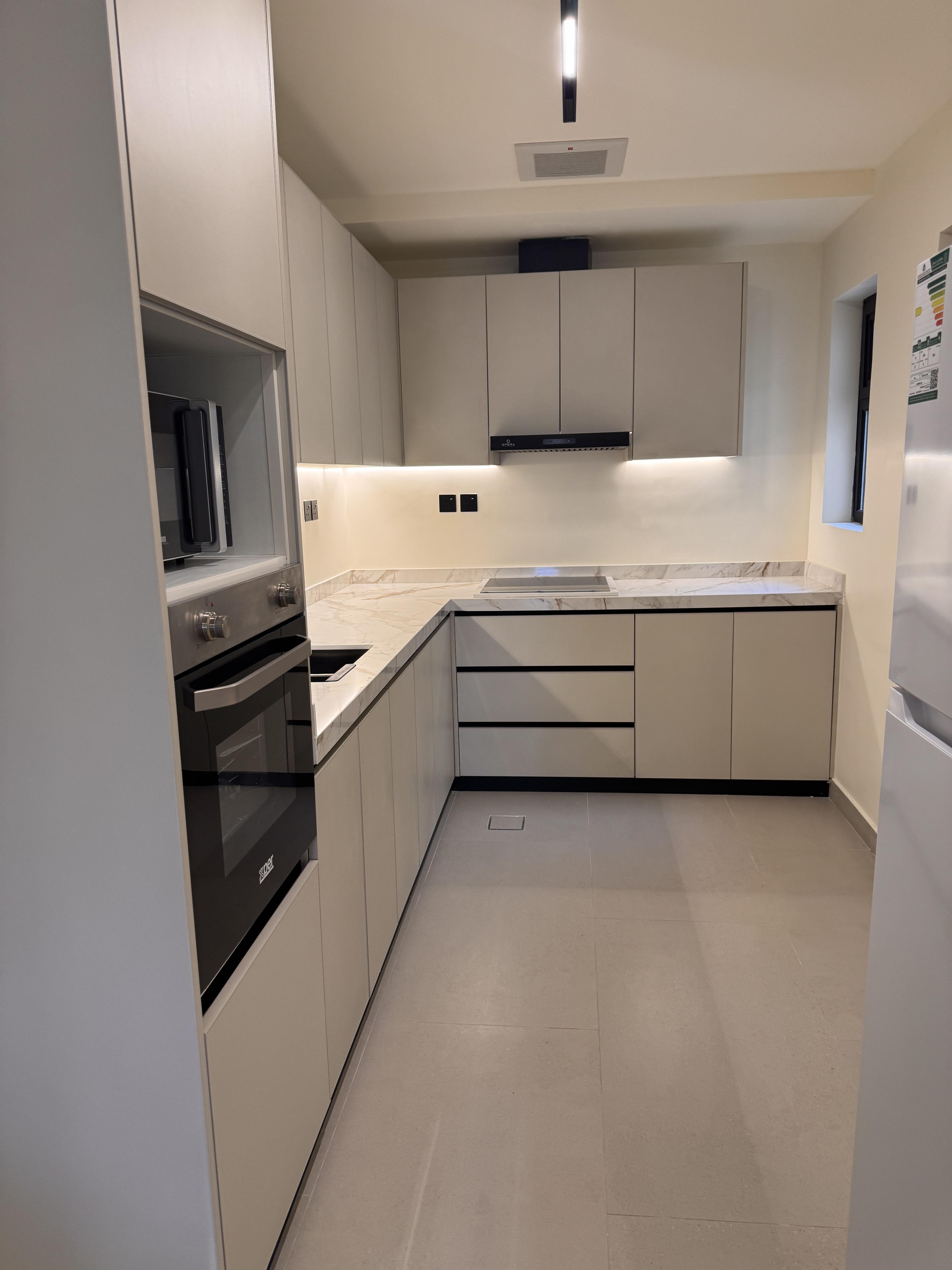 مؤثثه بالكامل مع الاجهزة كاملة (تلفزيون، غسالة والمطبخ كامل).