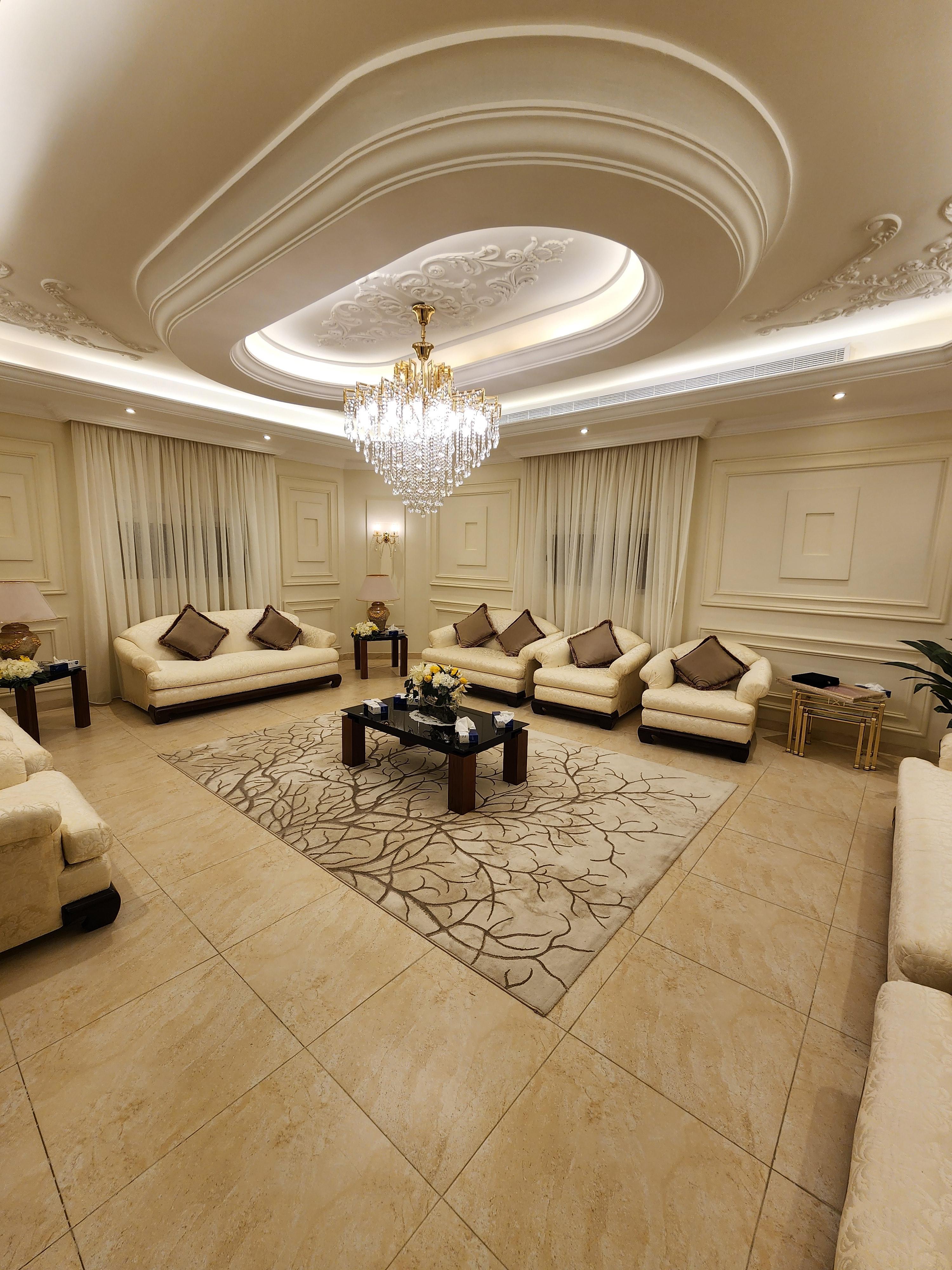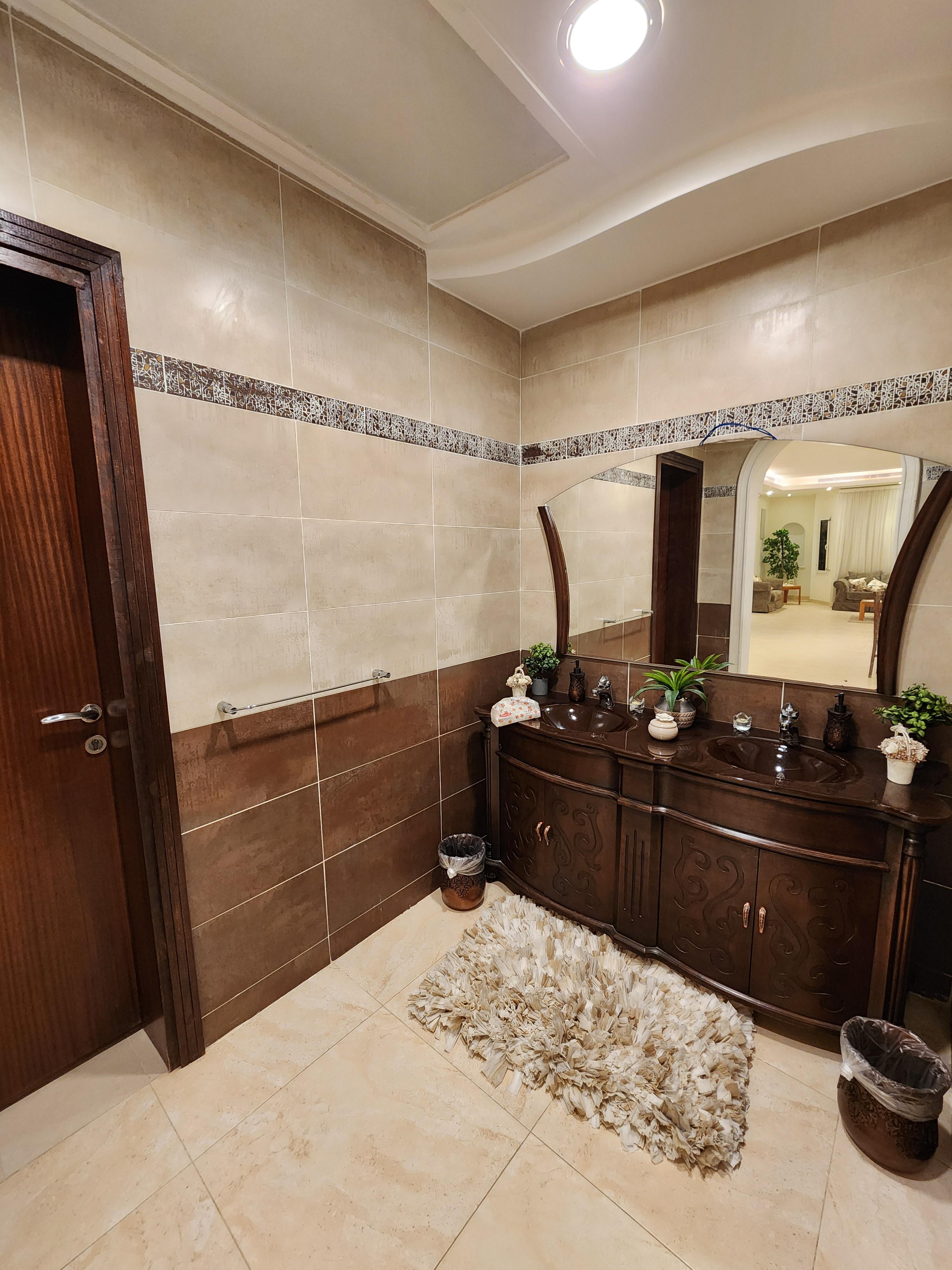 الدور الأول: 4 غرف نوم ماستر ملحق بها غرف ملابس. صالة كبيرة. مجلس عائلي. سرفيس . مغاسل ودورات مياه. مخزن.