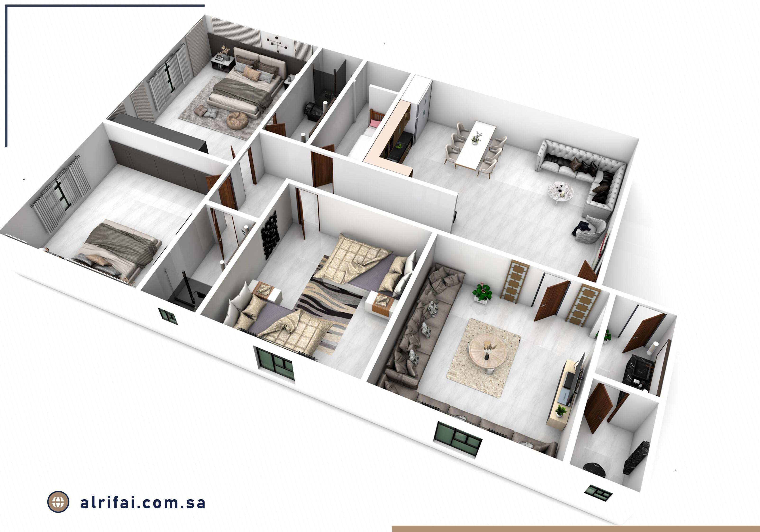 4 غرف واسعة بتوزيع عملي ومريح