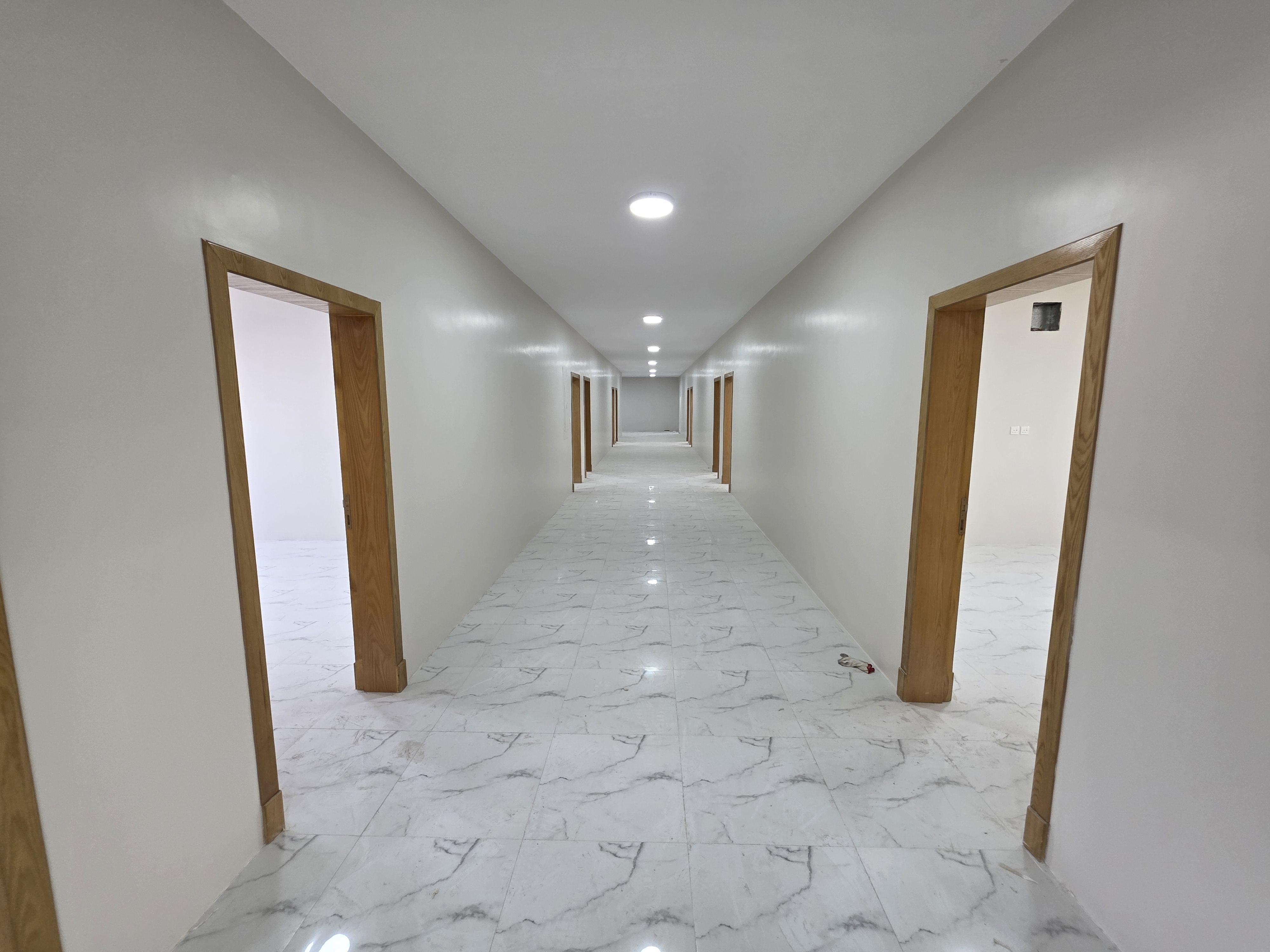 13 offices, 2 kitchens, and 8 bathrooms available for annual rent on Abu Hadriyah Road, directly behind the offices. There is a 2880 square meter yard available for rent at 140 riyals per square meter. For viewing and inquiries: 0581849994