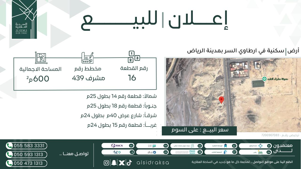 ▪️رقم القطعـــة: 16