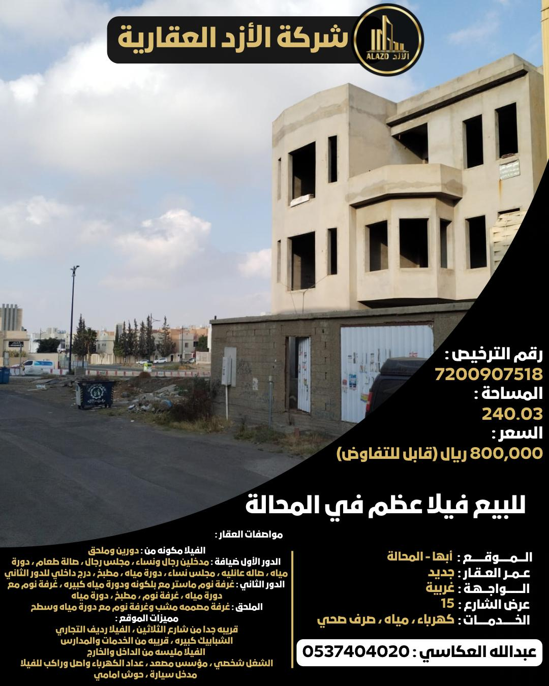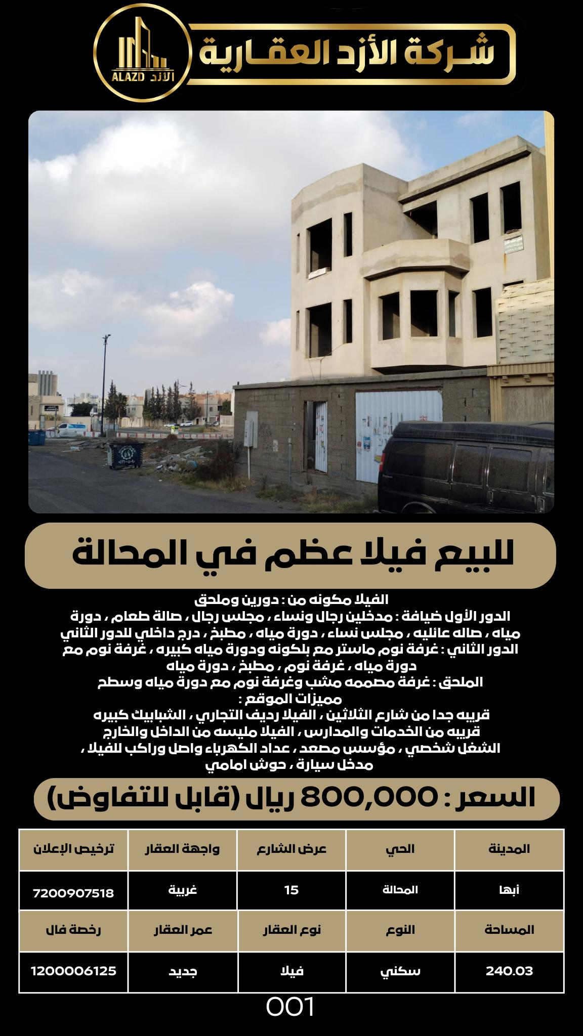 للبيع فيلا عظم في المحالة
