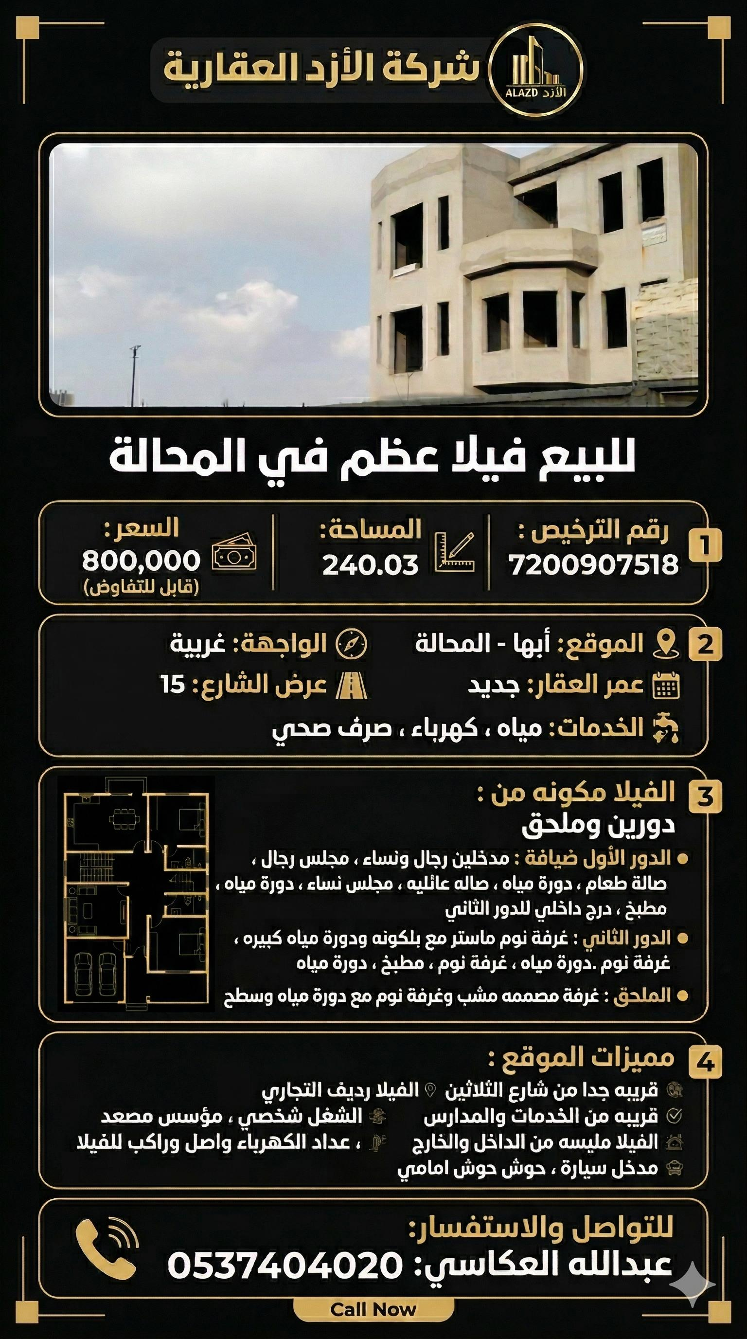 قطعة الارض رقم 516 / أ من المخطط التعديلى رقم 2995 / 1439 / ع / 1 فى 16 / 8 / 1439هـ والمبنى على المخطط الاساسى رقم 397 / 1407هـ/ ج/ 1 الواقع فى حى المحاله بمدينة ابها .