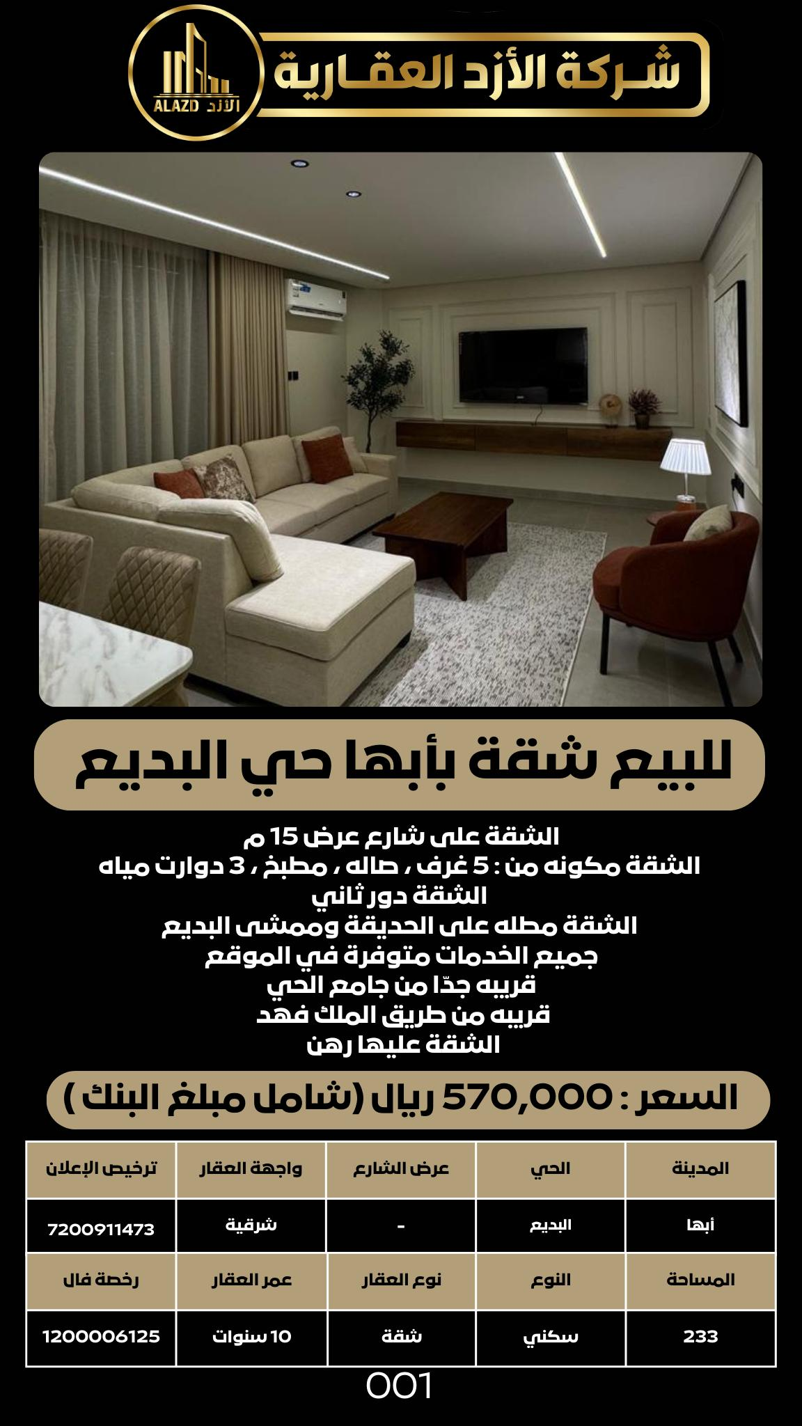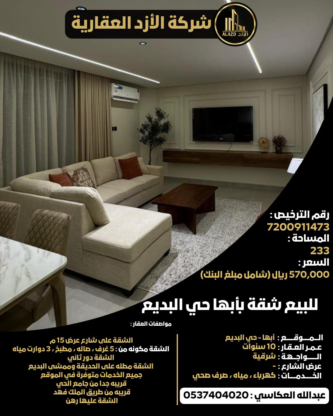 للبيع شقة بأبها حي البديع