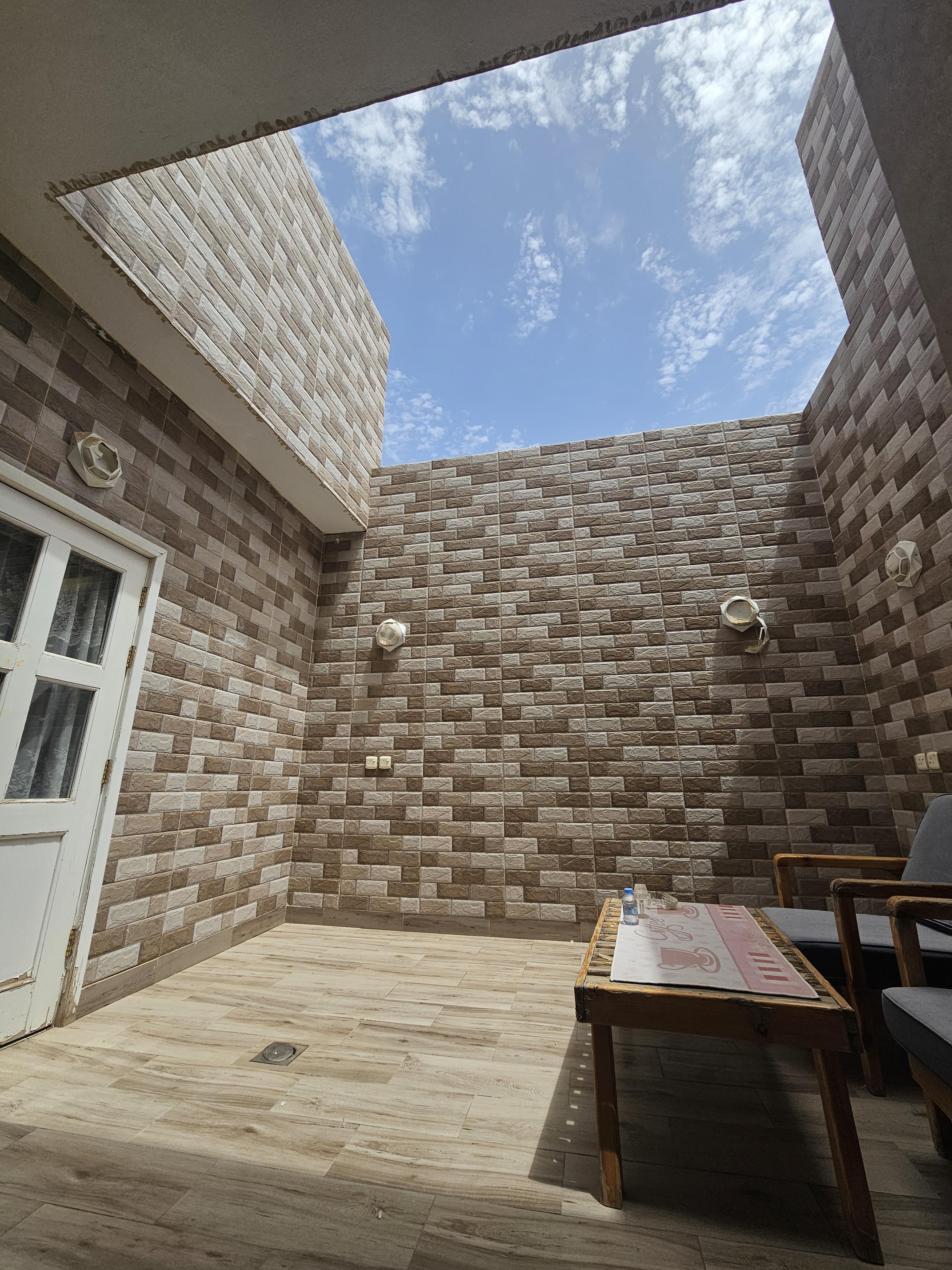الواجها والحوش حجر سوري مع اطارات حجر.