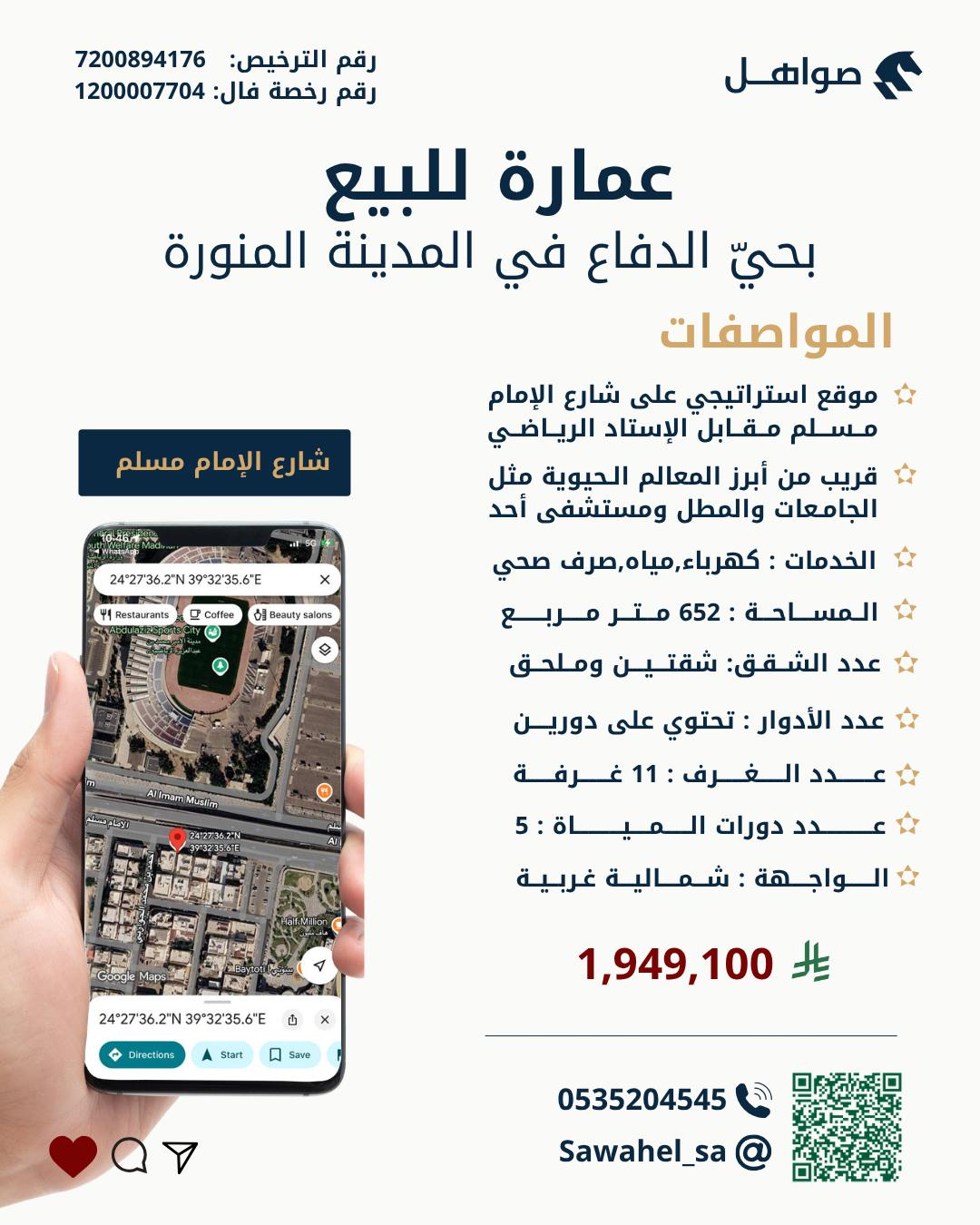 عمارة للبيع بحي الدفاع بالمدينة المنورة